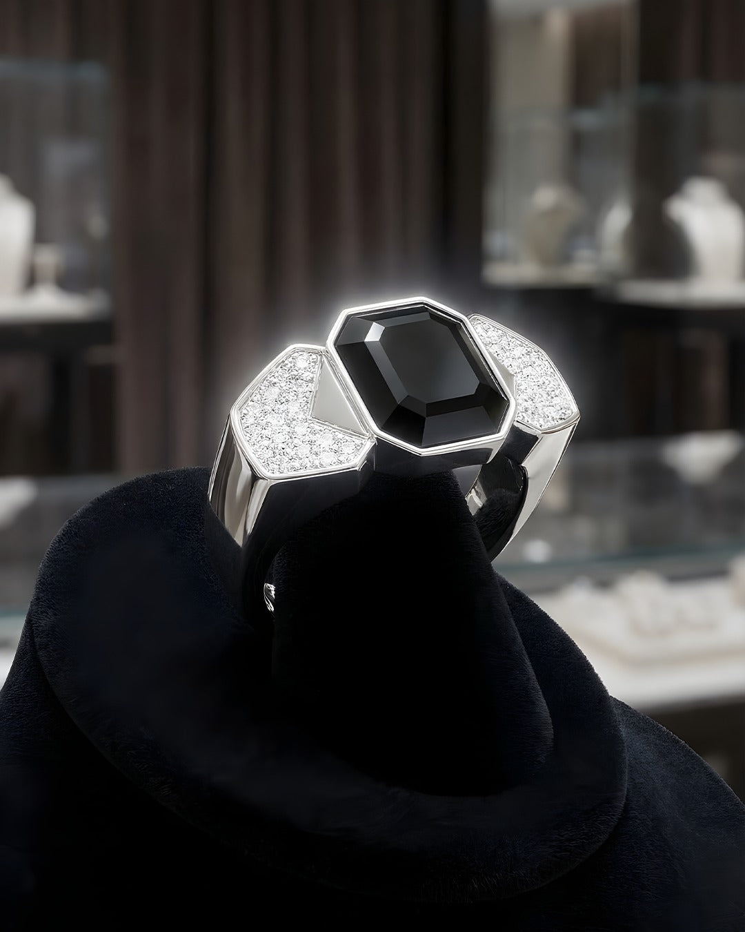 18 ayar beyaz/sarı altın üst kısmı yanları beyaz pırlanta ile süslenmiş, orta kısımda 10,50 ct siyah pırlanta uluslararası sertifikalı bulunmaktadır.