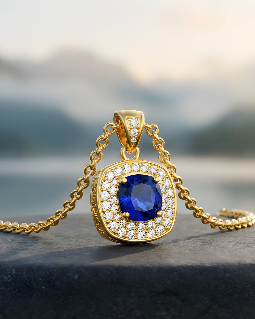 6 ct Mavi Elmas 18K Altın Kolye