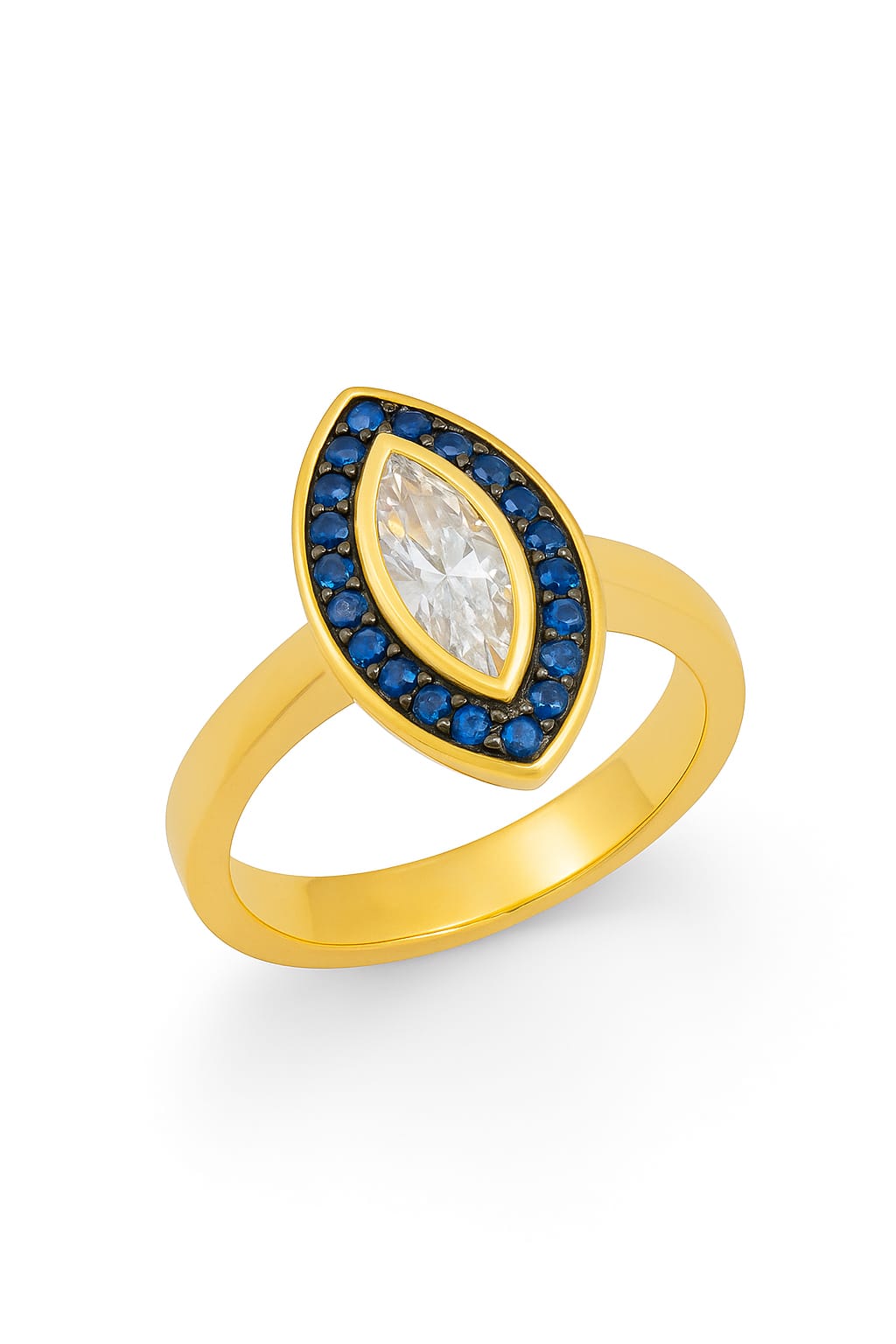 18 Ayar sarı altın 2ct beyaz F kalite uluslararası certificalı pırlanta. Yanlarında mavi pır küçük pırlanta F kalite 0,30/50 ct arası özel tasarım  Mavilikteki aydınlık serisi  Dünya'da 200 adet üretim olacak seçkin bir model olarak kullanıcılarına özgürlük sunuyor. Satış fiyatı. 10.000 bin euro dur.