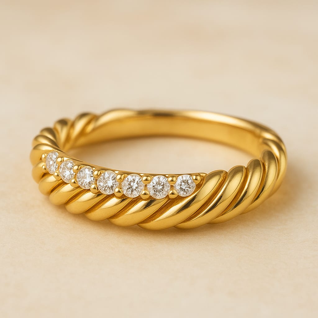 18 AYAR SARI BEYAZ ALTIN BURMA DESENLİ PIRLANTALI YÜZÜK