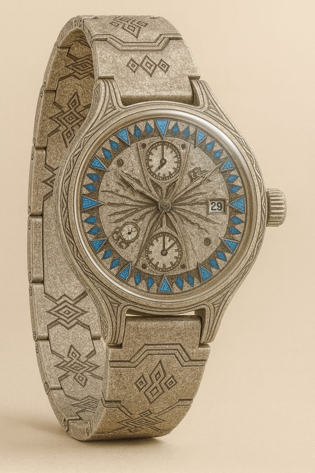 18 AYAR BEYAZ / SARI ALTIN ÜZERİNE OYMA SANATI İŞLEMELİ İÇ KADRAN BEYAZ / SARI ALTIN RAKAMLAR MAVİ İKON PIRLANTA İLE MODELLENMİŞ OTOMATİK MEKANİZMA PUSULA KRONOMETRE GÜN KOMPLİKASYONLARI İLE DONATILMIŞ ÖZEL ÇİZGİLER İLE TASARLANMIŞ KADRAN İLE 18 AYAR SARI / BEYAZ ALTIN OYMA SANATI İLE İŞLENMİŞ KORDONU İLE MODERN GEÇMİŞ SANATI BİRLEŞTİREREK MODELLENMİŞ ÖZEL TASARIM SANATIN IŞIĞI SERİSİ ( LIGHT OF ARTS) DÜNYADA 100 ADET ÜRETİLECEKTİR